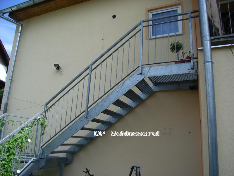 Feuerverzinkte Treppe mit Geländer und Türpodest im Aussenbereich